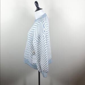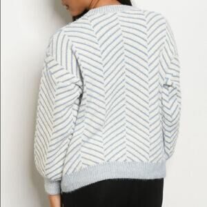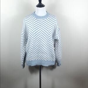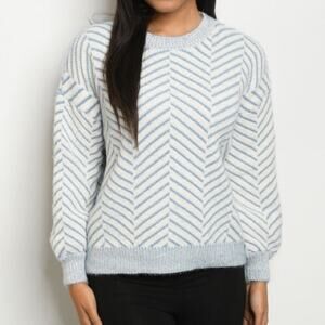 Blue striped ultra soft long sleeve round neck pullover knit sweater. 60% polyamide, 35% acrylic, 5% elastane.