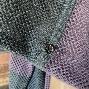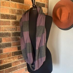 Elevate your style with this chic striped infinity scarf. Featuring elegant purple and gray tones, it's perfect for any occasion.