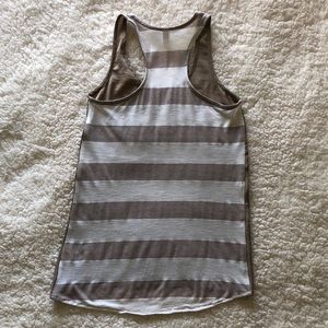 Soft, comfortable tan & white pocket tank top. Solid front, stripes on the back. Excellent condition, comes from a smoke-free home. Please feel free to ask me any questions!