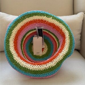 Raffia fabric. Bucket design. Striped print. Boho style. One Size.