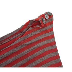 Striped Red & Beige Sleeveless Top With Side Ruching & Button Detail By Kenar