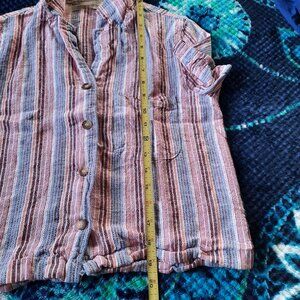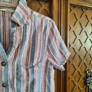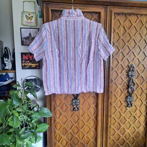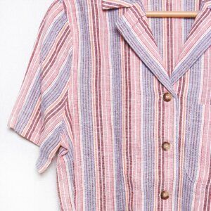 Stylish and comfortable, this striped crop top is perfect for any casual outing. Featuring a blend of red and blue colors, it adds a vibrant touch to your wardrobe.