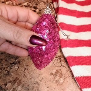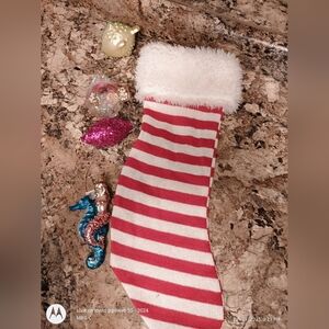 Striped Red and White Christmas Stocking And Christmas Ornament Bundle New