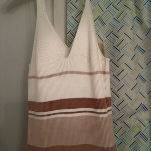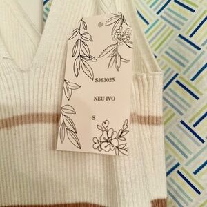 Stylish ribbed knit skirt with brown and cream stripes. Perfect for casual outings. Brand new