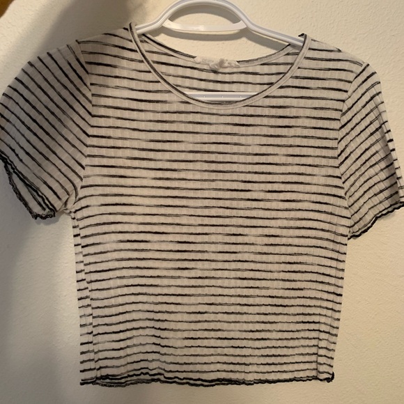 Soft and comfy shirt barely worn has cute black ribs on the edges