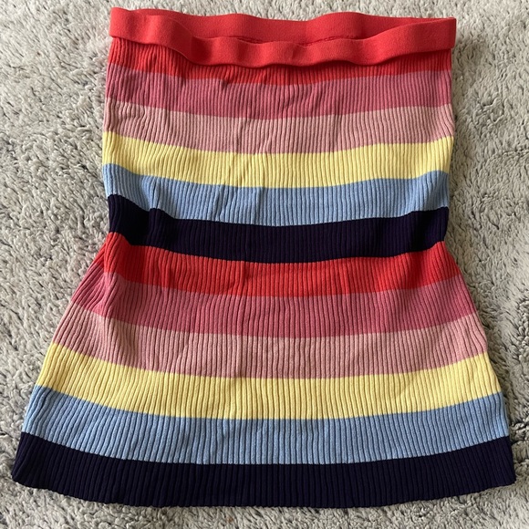 Vibrant striped ribbed tube top. Features red, pink, yellow, blue, and black stripes. Very stretchy, will fit body very nice girlies! I’ve never worn it, but it doesn’t have tags! Send offers! 🌷