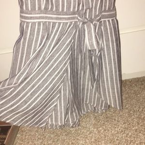 Tie front gray and white skort romper