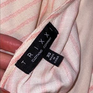 Size XS and never worn. Just cute button detail in the font and a tie back for extra support