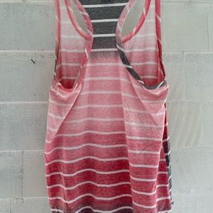 Faded pink and gray with white stripes scoop neck razor back tank top.