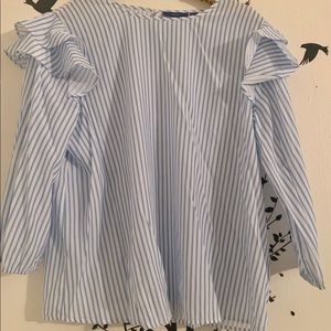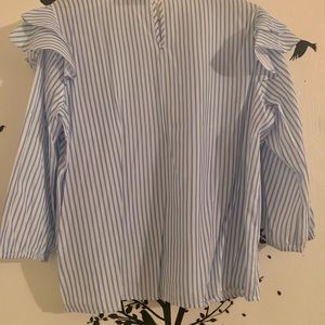 White and blue striped ruffle blouse with keyhole back. Only worn one time.