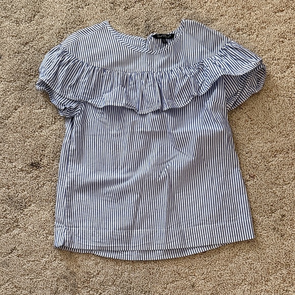 Chic striped blouse with ruffle detail. Perfect for casual outings.