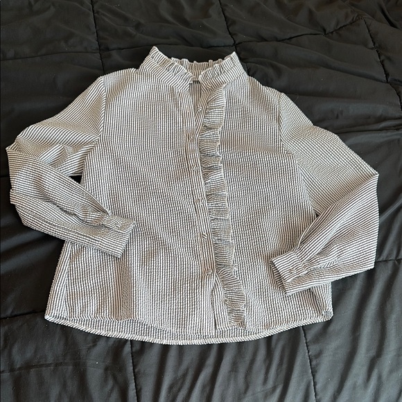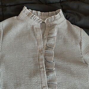 Striped Ruffle Button Down