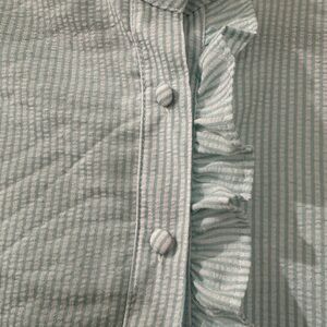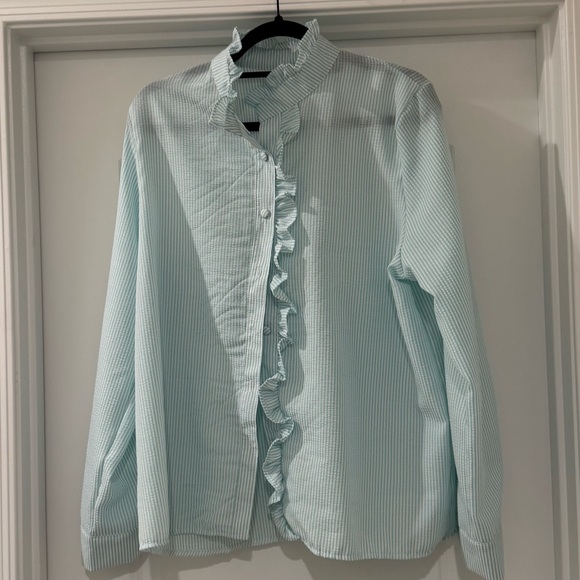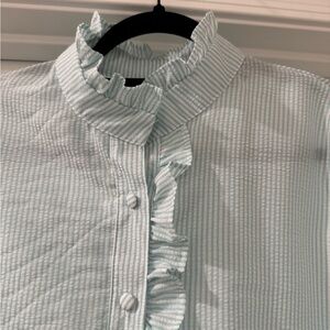 Elegant striped blouse with ruffle details. Perfect for any occasion.