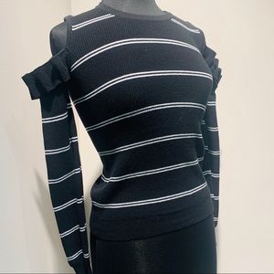 Striped Ruffle Cold Shoulder