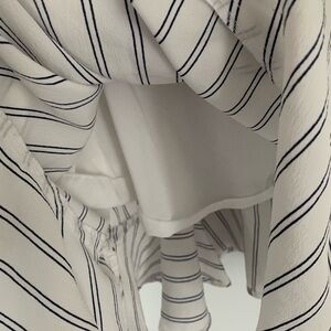 Elegant dress with ruffle details and stripes. Perfect for any occasion.