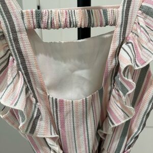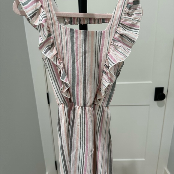Chic dress with ruffle details and colorful stripes. Perfect for any occasion.