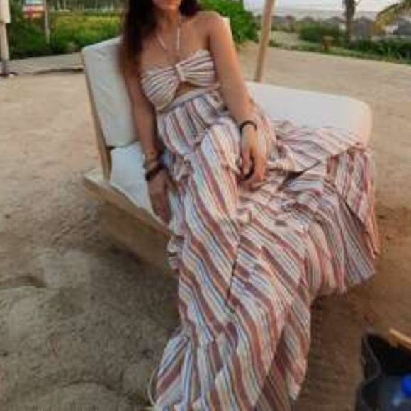 Striped Ruffle Hem Halter Dress with Cutout Detail