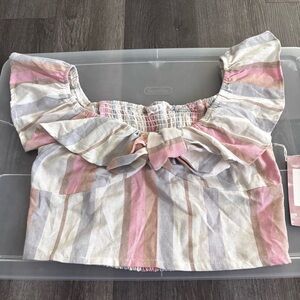 Striped Ruffle Off-Shoulder Crop Top