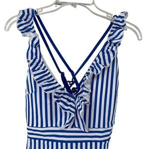 Striped Ruffle One Piece Swimsuit V Neck Blue Size L Cupshe Nautical Preppy Swim