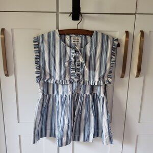 Striped Ruffle Sleeve Blouse