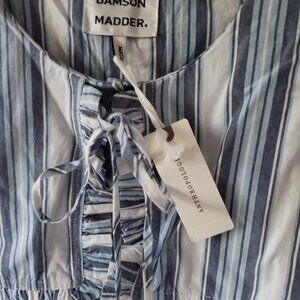 Elevate your style with this chic striped blouse featuring elegant ruffle sleeves. Perfect for any occasion.