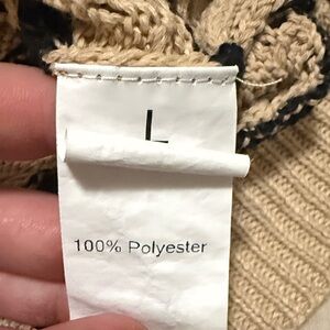 Stylish knit sweater with ruffle sleeves and striped pattern. Perfect for casual wear.
