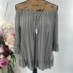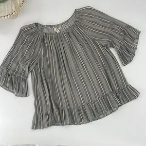 Elevate your style with this chic striped top featuring elegant ruffle sleeves. Perfect for any occasion.
