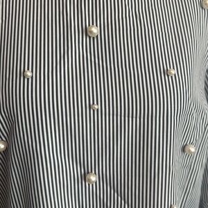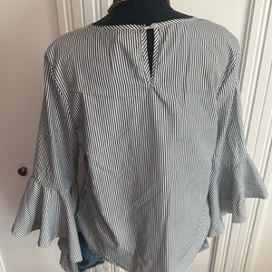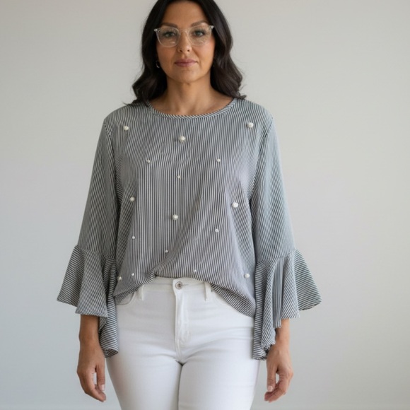 Striped Ruffle Sleeve Top with Pearls