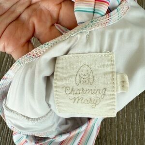 Adorable striped swimsuit with ruffle details. Perfect for summer fun. Excellent condition. Pet free and smoke free home.
