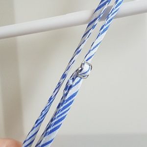 Fun blue and white striped tank! Looks great with some white jeans and wedges. Could be worn as a shoulder top or with both straps! Great top for spring. (Smaller strap is adjustable.)