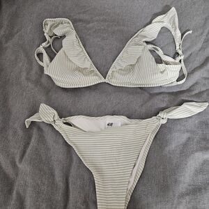 Elevate your swimwear collection with this chic striped bikini top. Featuring a stylish ruffle trim and a flattering fit, it's perfect for sunny days at the beach or pool.