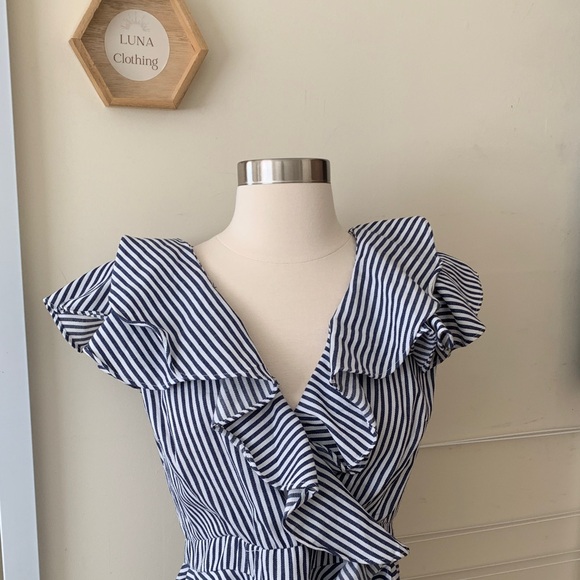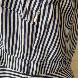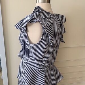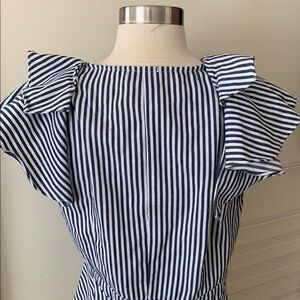 Navy Stripe Ruffle Top, side zipper closure,