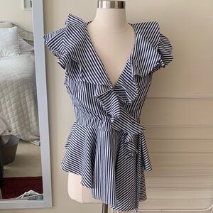 Striped Ruffle Wrap Top
