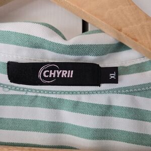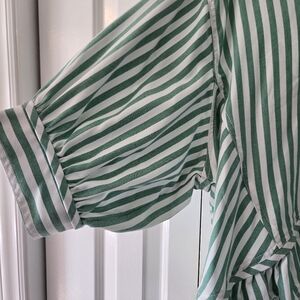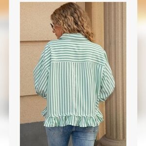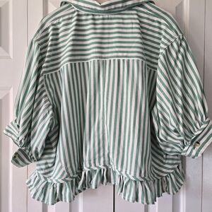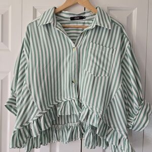 Striped Ruffle-Hem Button-Up Top - Green XL