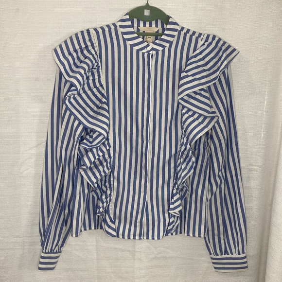 Striped Ruffled Button Down