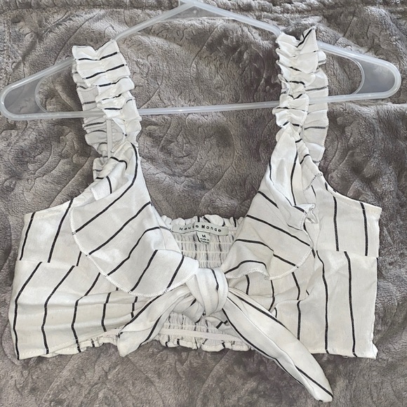 Beautiful crop top with ruffles on the straps. Can be paired with high waisted shorts and jeans or dressed up with a high waisted skirt. Once sold, I will be mailing it out the next day for fast 3 day shipping 🚚💨.