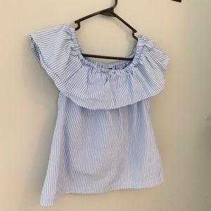 Striped Ruffled Neckline Top