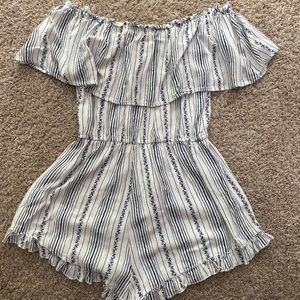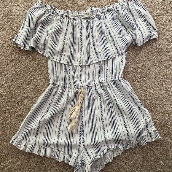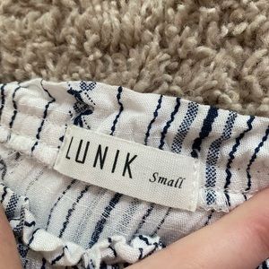Lunik striped romper with tie at the waist. Can be worn on or off the shoulder, very cute! Fits XS and S, worn once.