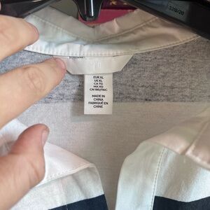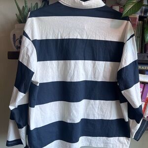 This black and white striped rugby shirt from H&M is in excellent used condition. It’s a free people dupe! It’s never been worn just tried on. It had a small mark on the back of the collar (see photos) but it’s not noticeable & may come out in the wash. Size XL. Tagged as Free People for exposure.