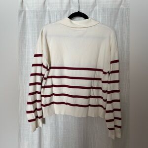 Super soft, white and maroon striped collared sweater. Worn twice, excellent condition.