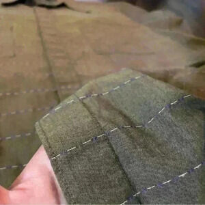 This vintage men's button-up shirt is a must-have for any fashion-savvy individual. The shirt features an all over army green shade with purple striped pattern with short sleeves, a collared neckline, and button closure. It is made from a comfortable woven blend of cotton and polyester with the coolest stitch detailing and hidden button accents.