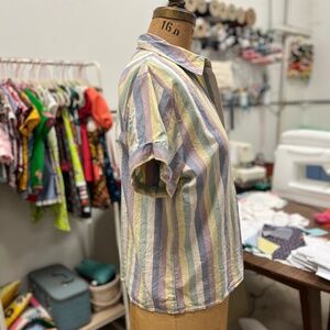 Pastel striped button up with cuffed sleeves and breast pocket. Great condition with no stains or marks, including underarms.
