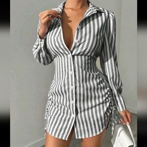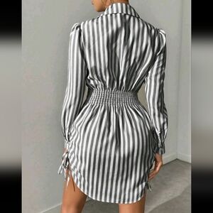 Striped Side Drawstring Shirt Dress