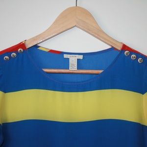 Striped silk top, anchor buttons on both shoulder, Never worn Slight pull on back – price reflects