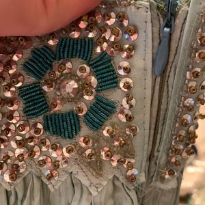 Striped Silk Maxi Skirt With Side Zipper