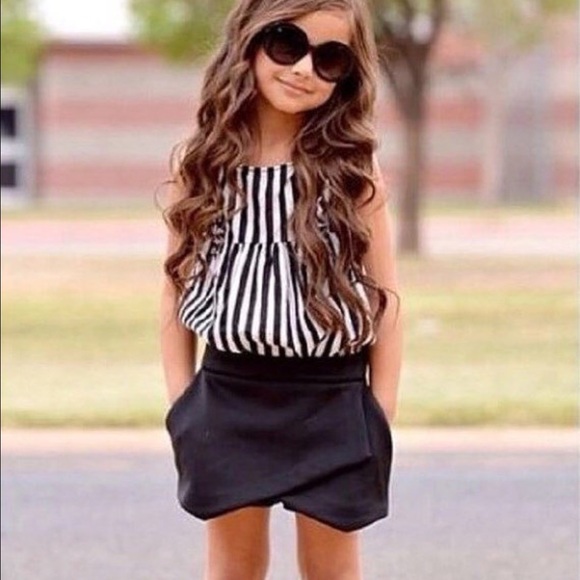 ***Sold out of Matching necklace. This set includes top and bottoms only***This set is so cute, and perfect for everyday wear, birthdays photo shoots and more! This set includes the striped tank, black skort. Make your little one stand out in this trendy set. All NWOT Sizes available: 2-3yr through 6-7yr... choose your size at check out