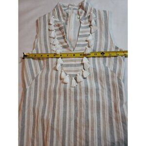 Striped Sleeveless Linen Blend Dress With Tassel Details By Eliza J Size 0