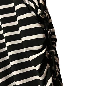 Keywords: striped dress, maxi dress, midi dress, sleeveless dress, ruched dress, side slit dress, summer dress, casual dress, black and white dress, beach dress, vacation dress, comfortable dress, stylish dress