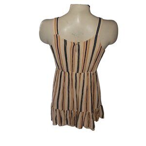 Striped Sleeveless Ruffle Hem Dress By Zunie L/14/16 Peach/Black/White
