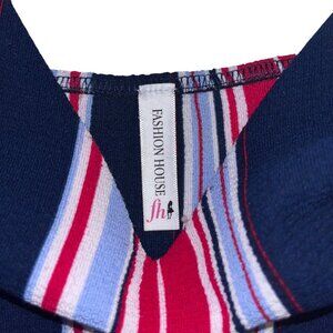 This vibrant jumpsuit brings to life the charm of carefree summers. With its bold red, white, and navy stripes, it evokes a sense of nautical adventure. The adjustable straps and cinched waistline provide a flattering and comfortable fit, while the wide-leg silhouette adds a breezy elegance to your every step.